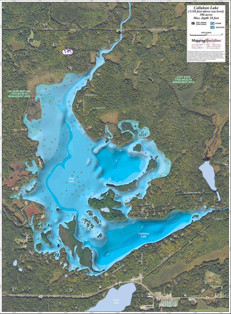 Enhanced wall map of Callahan Lake in Sawyer County, Wisconsin, with aerial imagery.