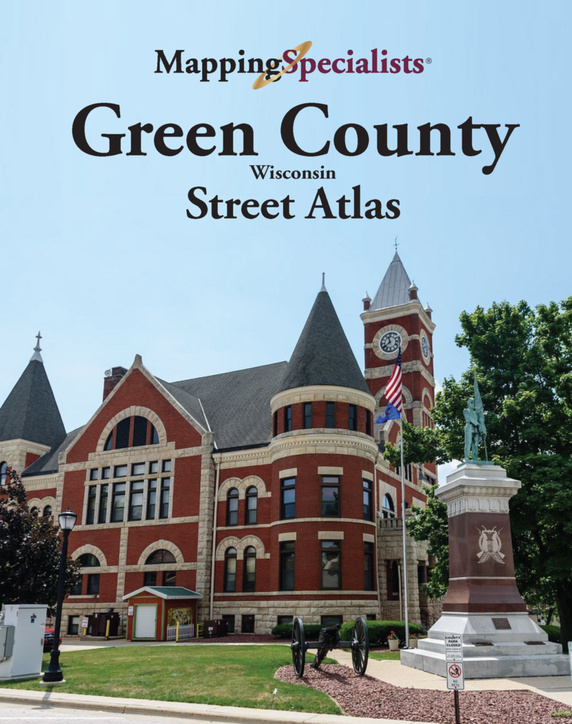 Detailed street maps of Green County, WI. Newly updated for 2024! Includes detail maps of major communities. Spiral bound with laminated cover.