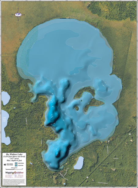 Enhanced wall map of Ike Walton Lake in Vilas County, Wisconsin with aerial photography.