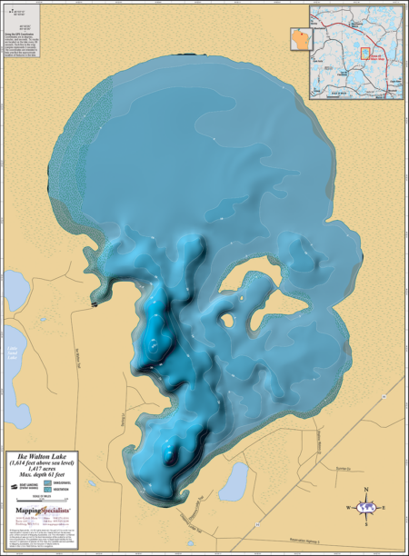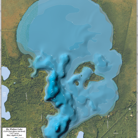 Wall map of Ike Walton Lake in Vilas County, WI.