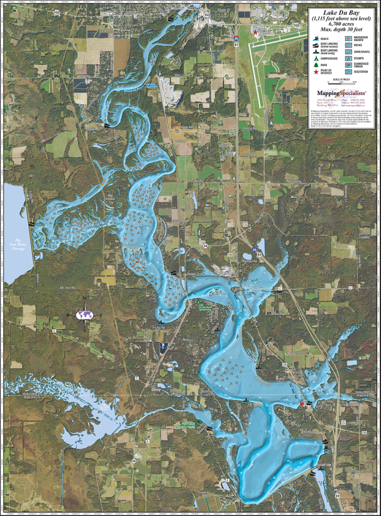 Enhanced wall map of Lake Du Bay in Portage County, Wisconsin, with aerial photography.