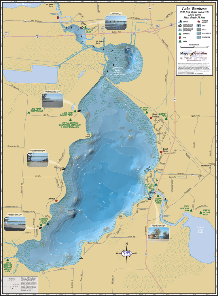 Fold map of Lake Waubesa in Dane County, WI.