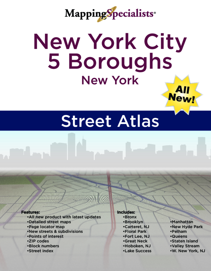 Detailed street maps of New York City and the 5-Borough area. Includes a full street index. All new maps for 2023!