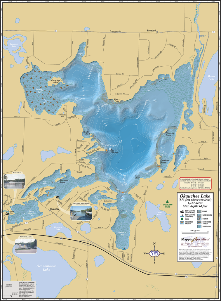 Fold map of Okauchee Lake in Waukesha County, WI.