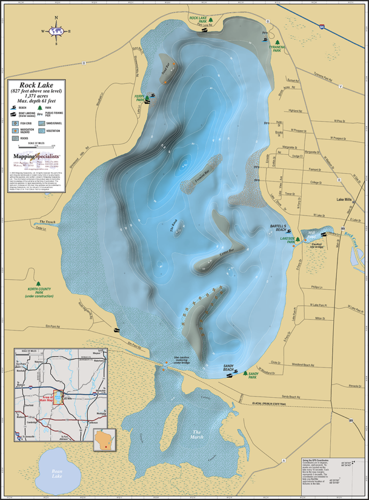 Wall map of Rock Lake in Jefferson County, WI.