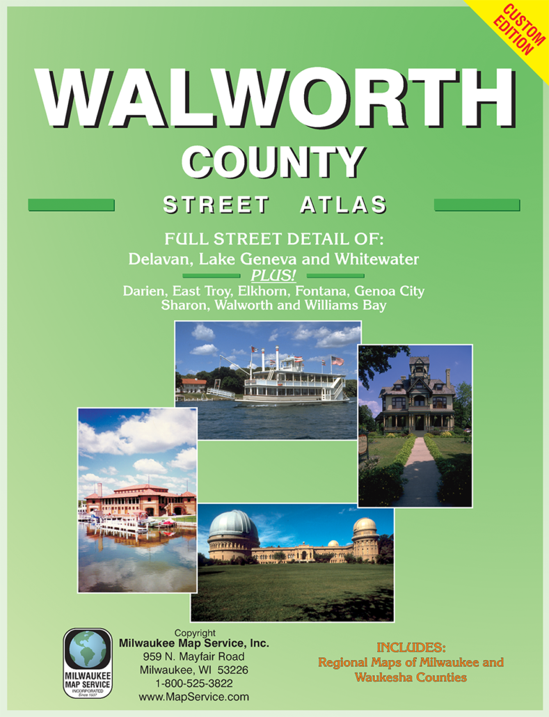 Detailed street maps of Walworth County, WI. Spiral bound with laminated cover.