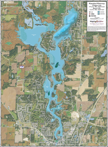 Enhanced wall map of Waterford Waterway in Racine County, Wisconsin with aerial photography.