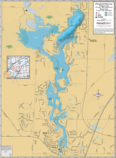 Wall map of Waterford Waterway in Racine County, WI.